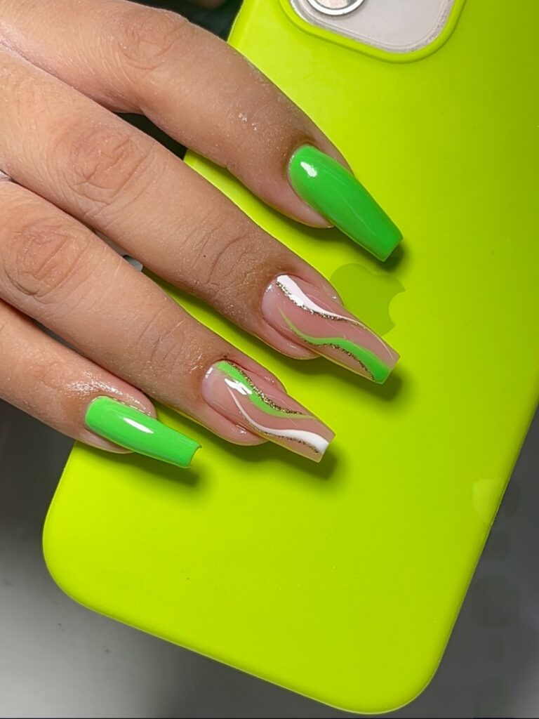 3. Neon Green Coffin Nails