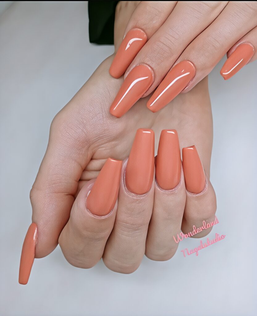 5. Coral Orange Coffin Nails