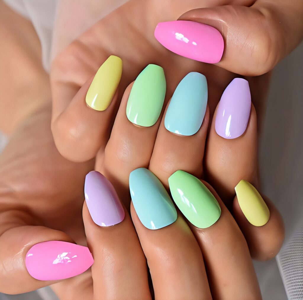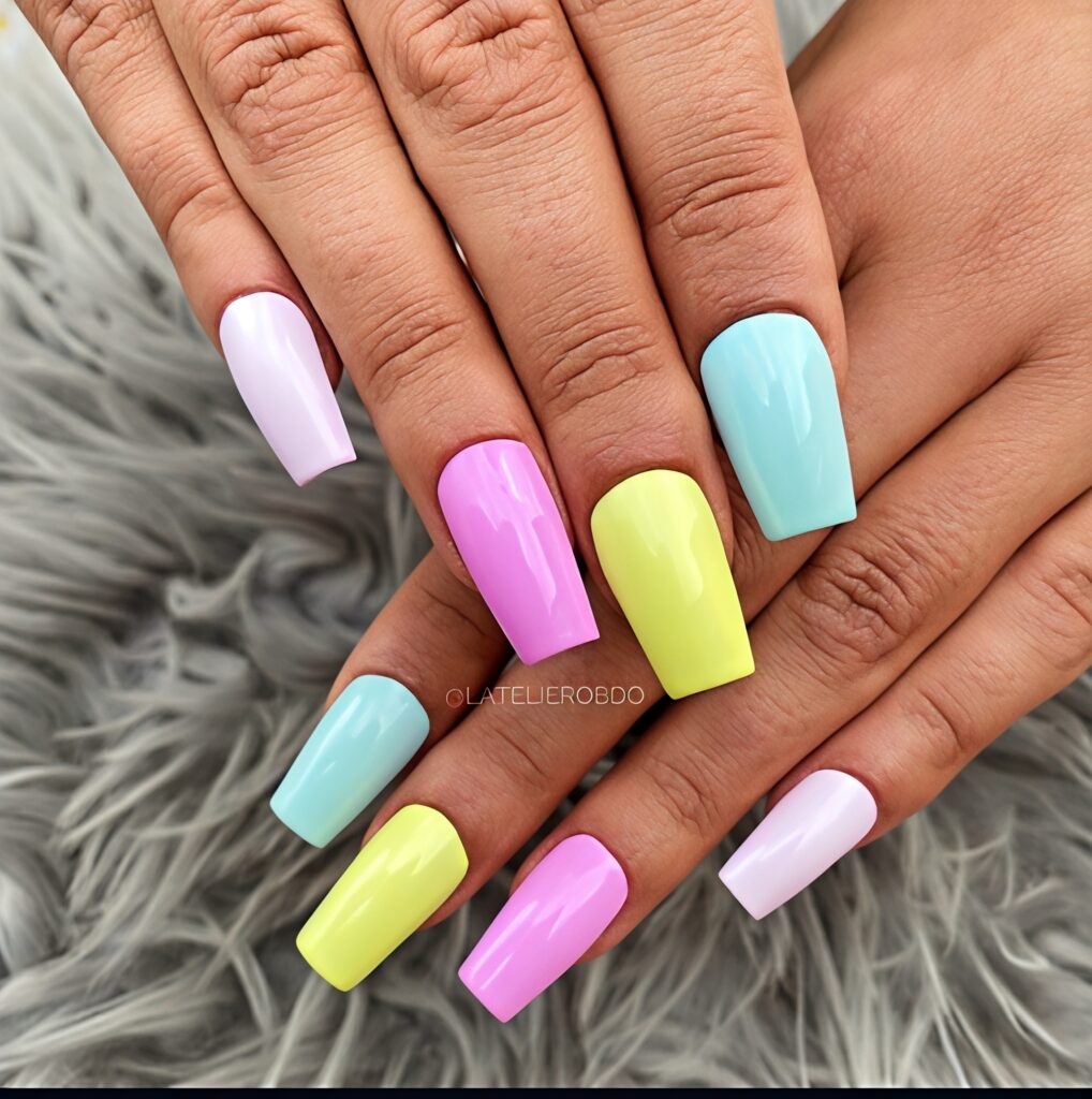 24. Pastel Mix Coffin Nails
