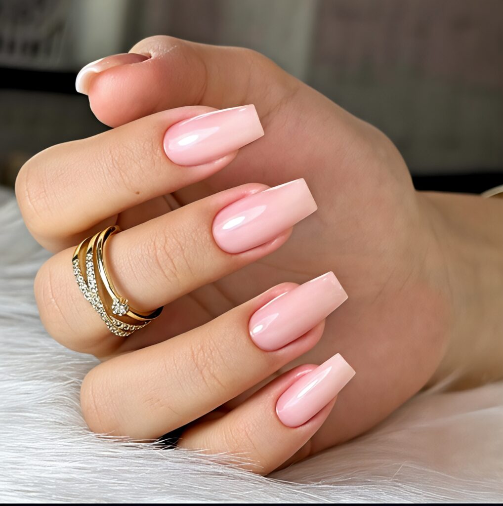 Nude glossy coffin nails give a natural and clean look. The shiny finish makes the nails look healthy and smooth. This design is perfect for school events or family gatherings. The coffin shape adds style without being too bold. It is simple but always looks elegant and beautiful.