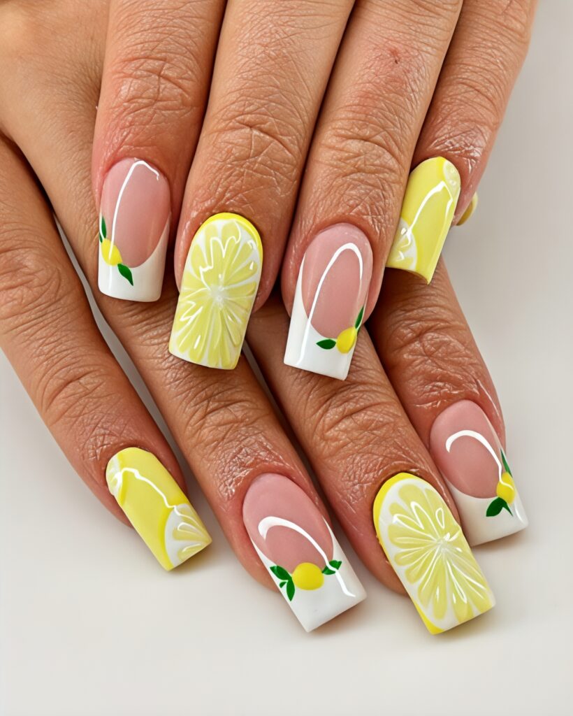 14. Lemon Art Coffin Nails