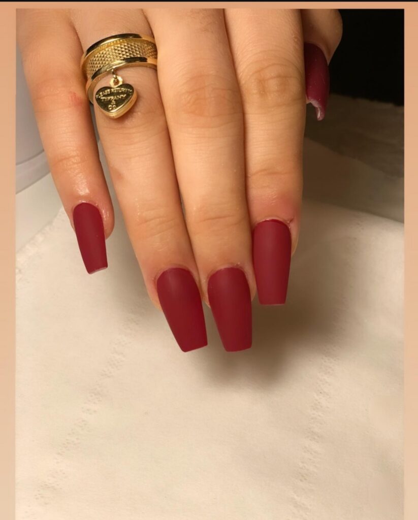 16. Matte Red Coffin Nails