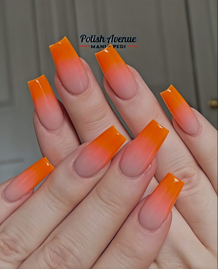 19. Orange Ombre Coffin Nails