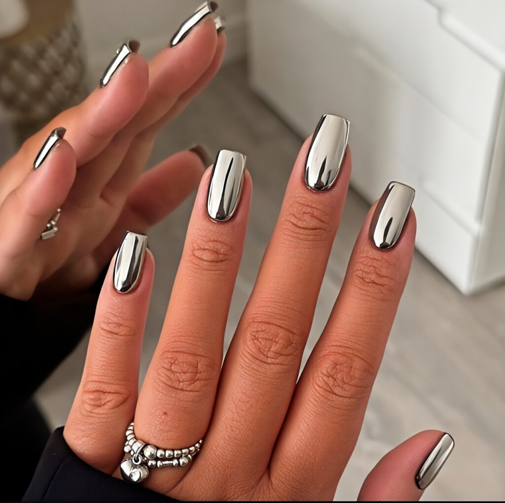 22. Silver Chrome Coffin Nails