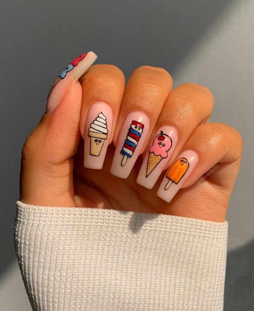 21. Ice Cream Art Coffin Nails