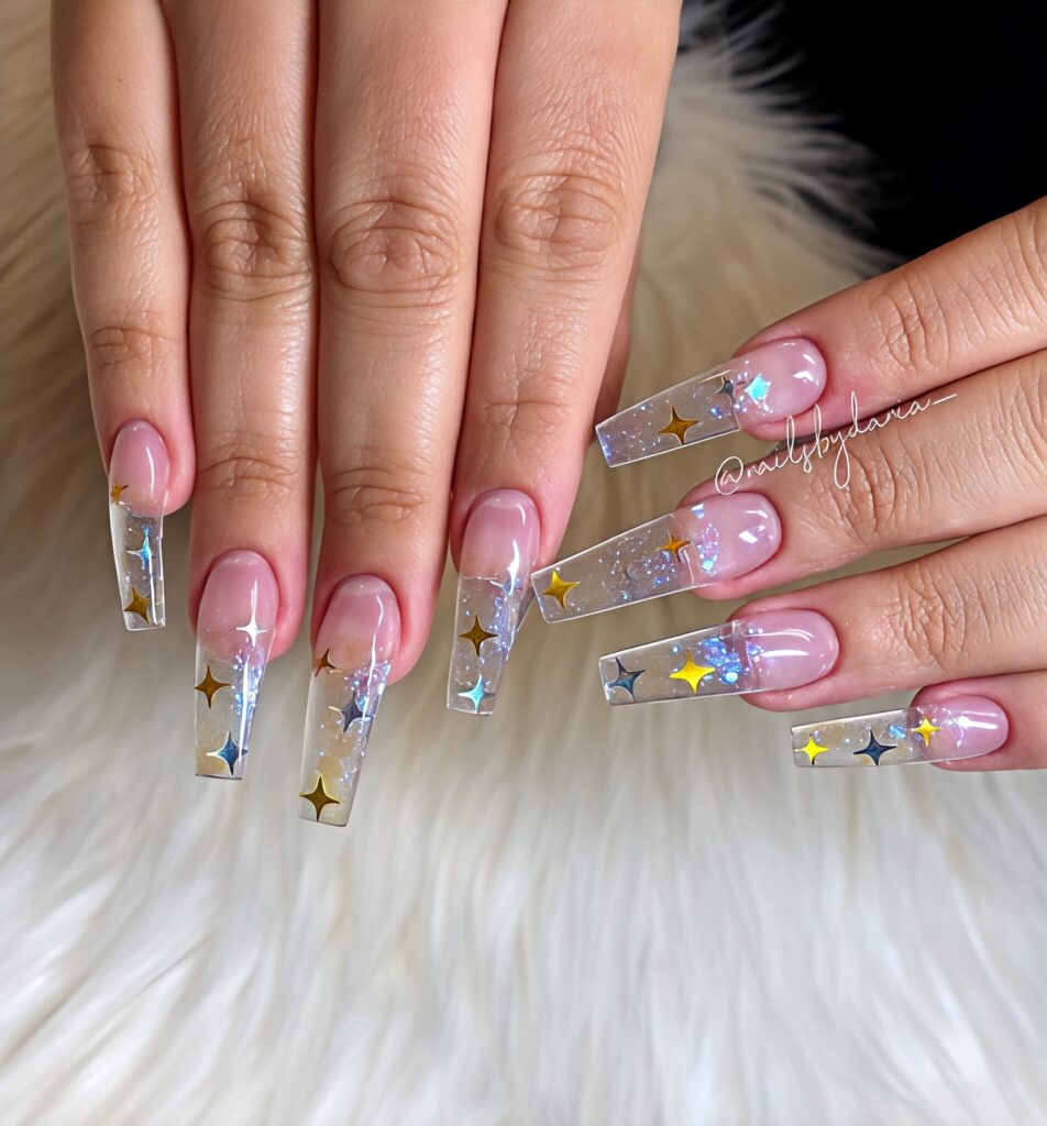 25. Transparent Glitter Coffin Nails