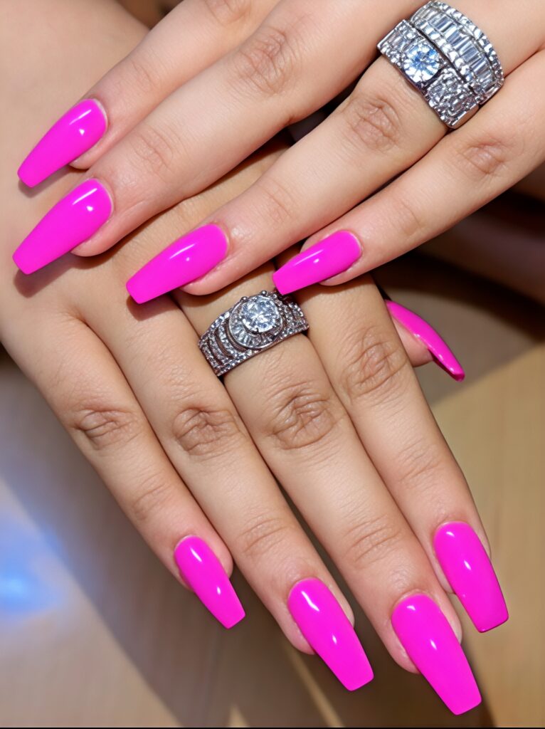 26. Hot Pink Coffin Nails