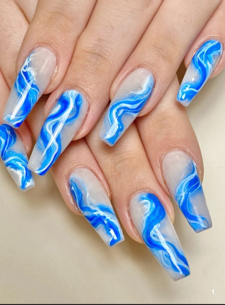 27. Blue Marble Coffin Nails