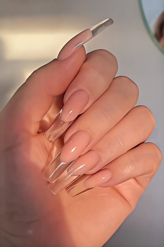 12. Nude Glossy Coffin Nails