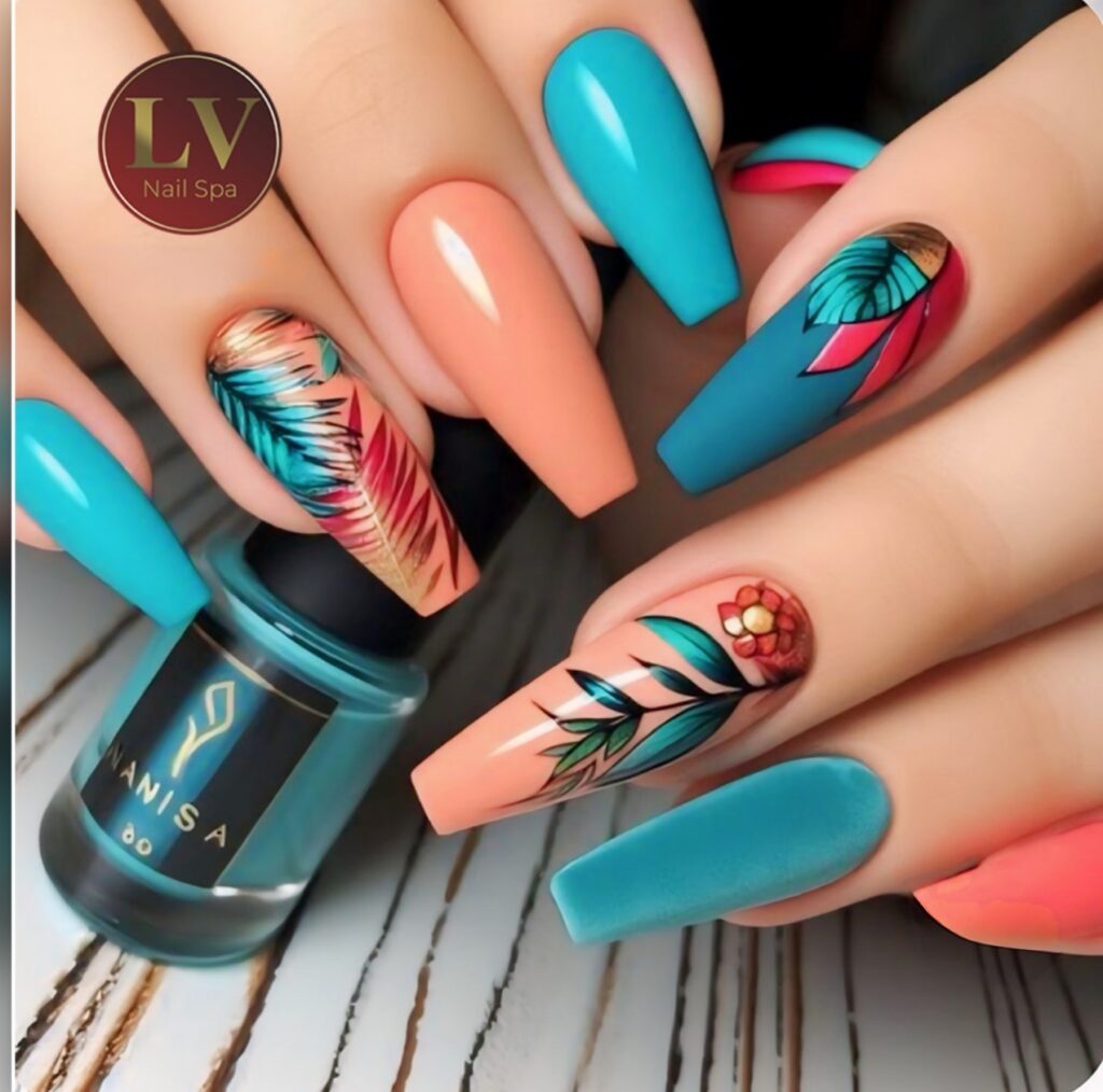 17. Tropical Leaf Coffin Nails