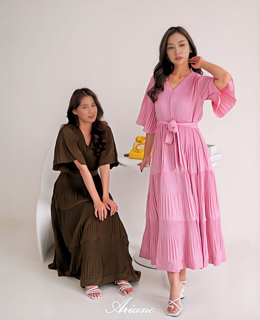 A chiffon pleated dress feels soft and light. The pleats move beautifully when you walk. It gives a very gentle and elegant look. Choose soft colors like brown or blush pink. Wear simple heels and small earrings. This outfit looks dreamy and perfect for graduation photos.