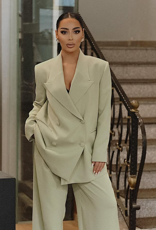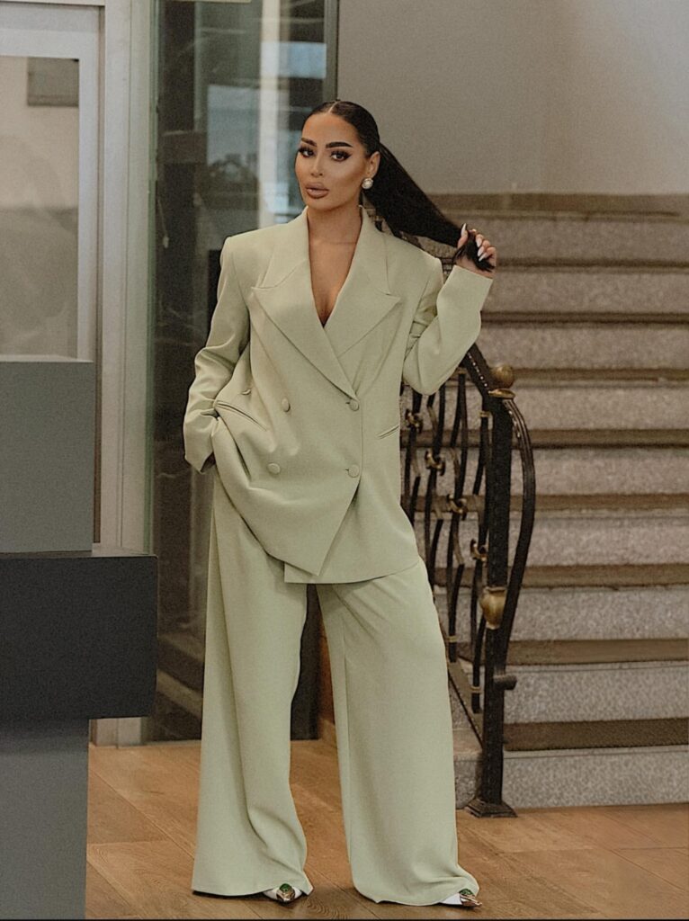 A mint textured linen blazer with matching wide-leg pants looks fresh and stylish. The soft mint color feels calm and perfect for a daytime graduation. Linen fabric is light and comfortable so you can wear it for many hours easily.