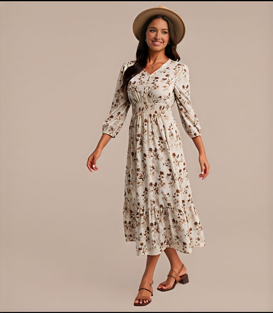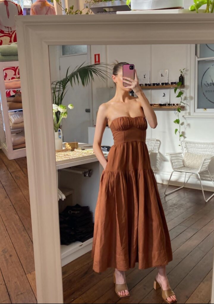 A terracotta linen midi dress looks warm and natural. The earthy color feels unique and stylish. Linen fabric keeps you comfortable all day. Wear brown or nude heels and simple accessories. This outfit feels relaxed but still very elegant for graduation day.