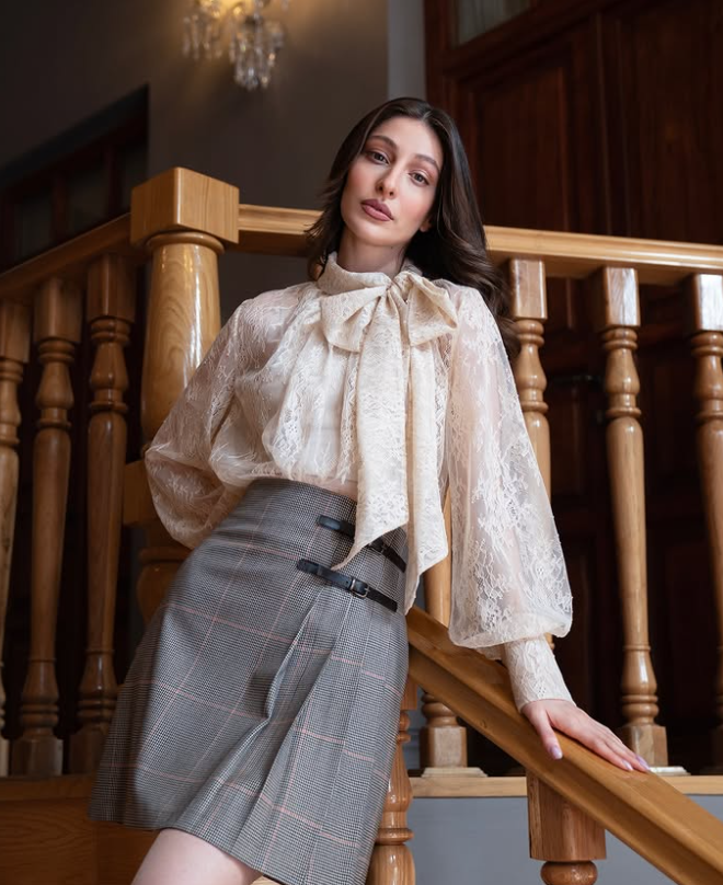 A black lace blouse looks elegant and special. When you wear it with tailored trousers it creates a classy and smart outfit. It is perfect if you like a formal style. Choose straight or wide-leg pants. Add heels and a neat hairstyle. This look is simple but strong, and it shows confidence on your big day.