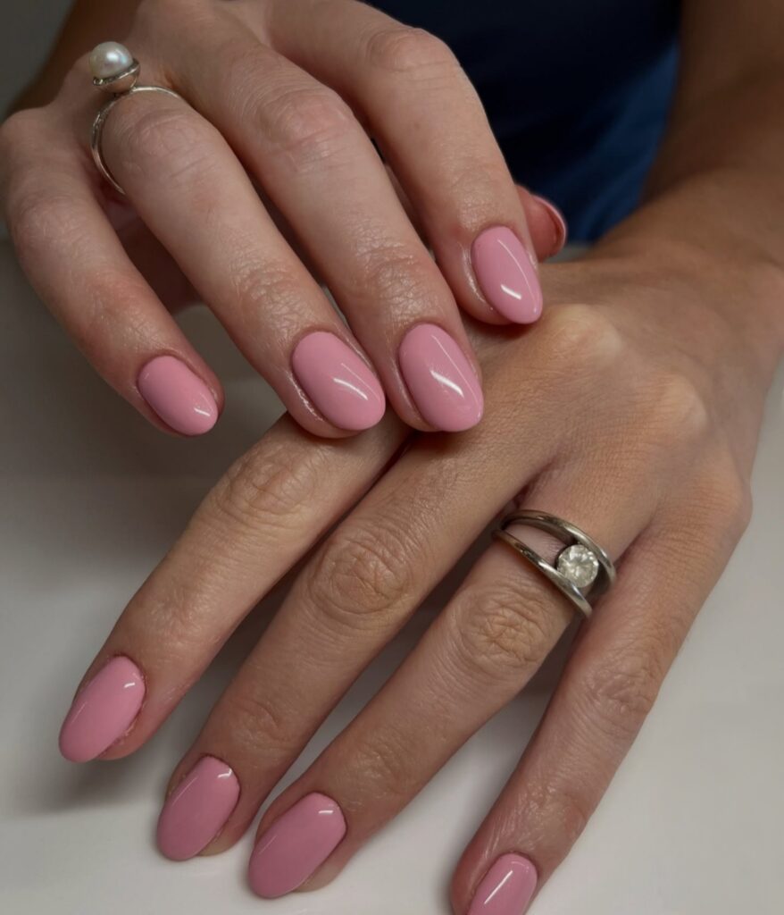 Soft pink almond nails look sweet, feminine and very calming. This color gives a fresh and youthful feeling to your hands. It works well for all seasons and all ages. Pink almond nails are perfect when you want something pretty but not too bold. They show softness and kindness through simple color.
