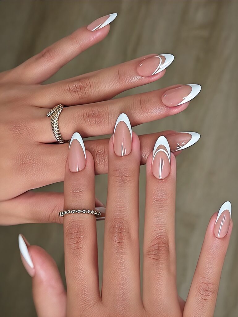 4. French Tip Almond Nails With Modern Touch