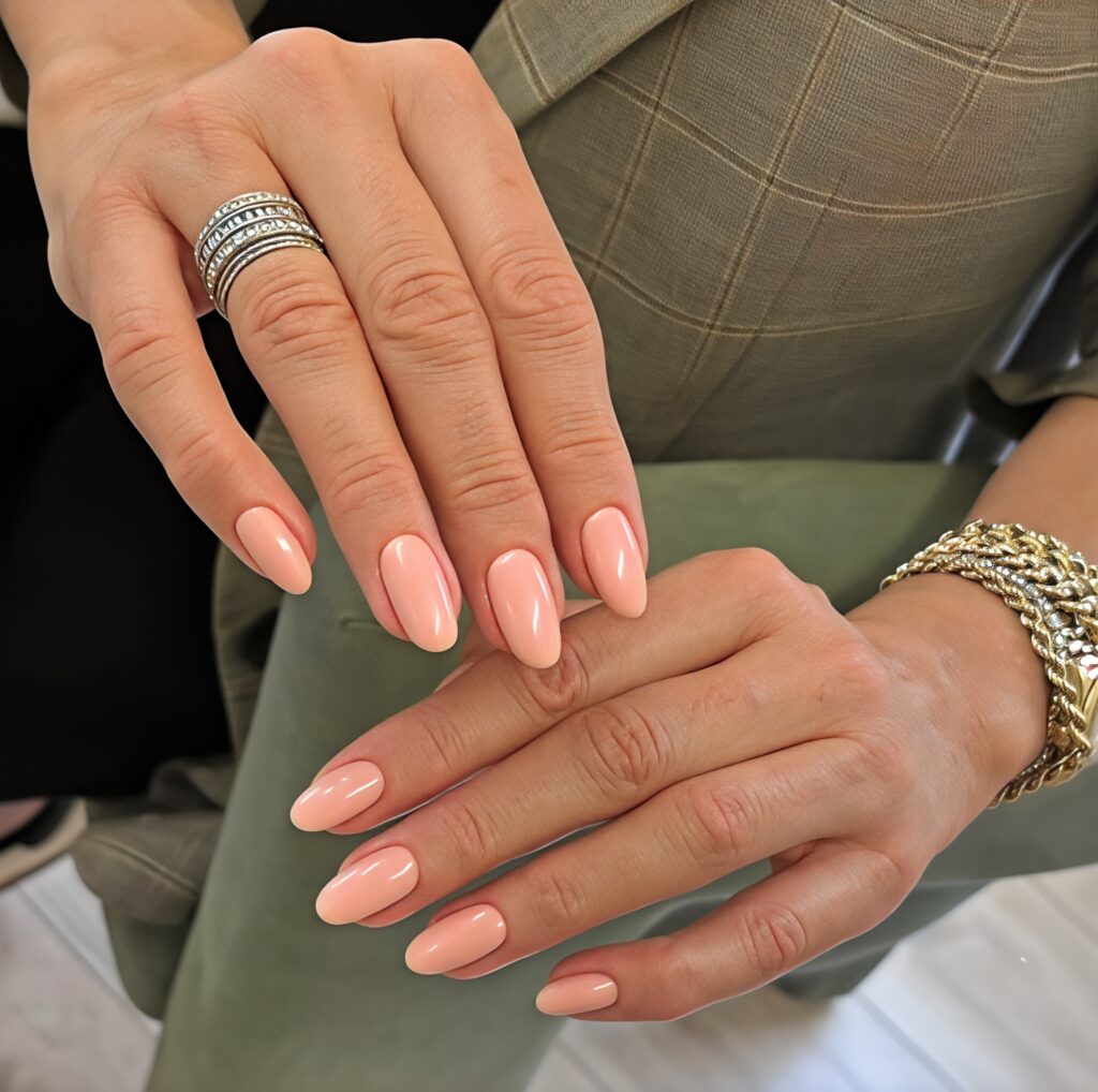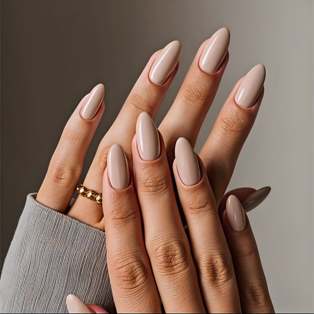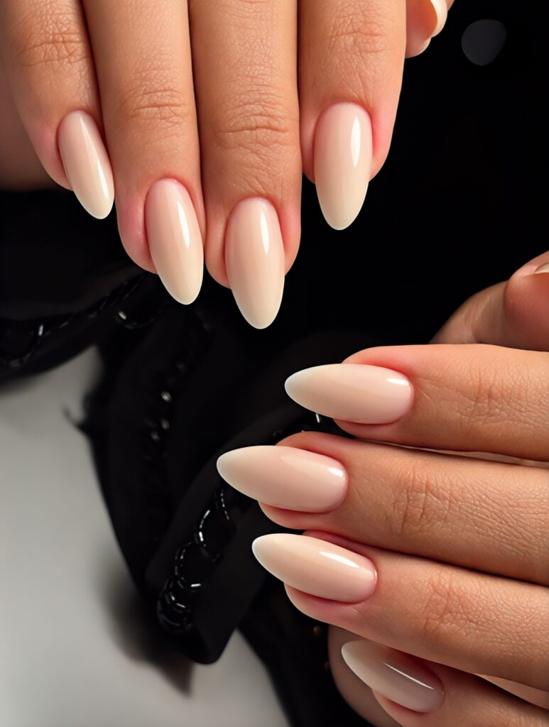 1. Classic Nude Almond Nails With Soft Glow