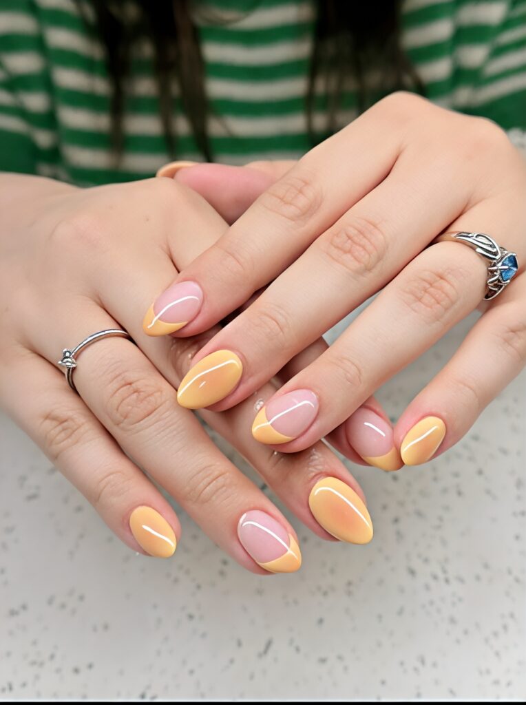 Peach almond nails give a gentle and warm look. This color feels friendly, fresh and comforting. It suits summer and spring perfectly. The almond shape makes the peach shade look soft and natural. These nails are ideal for people who love light colors with a happy vibe. These nails feel sweet and cheerful. They bring warmth and a soft smile to your hands.