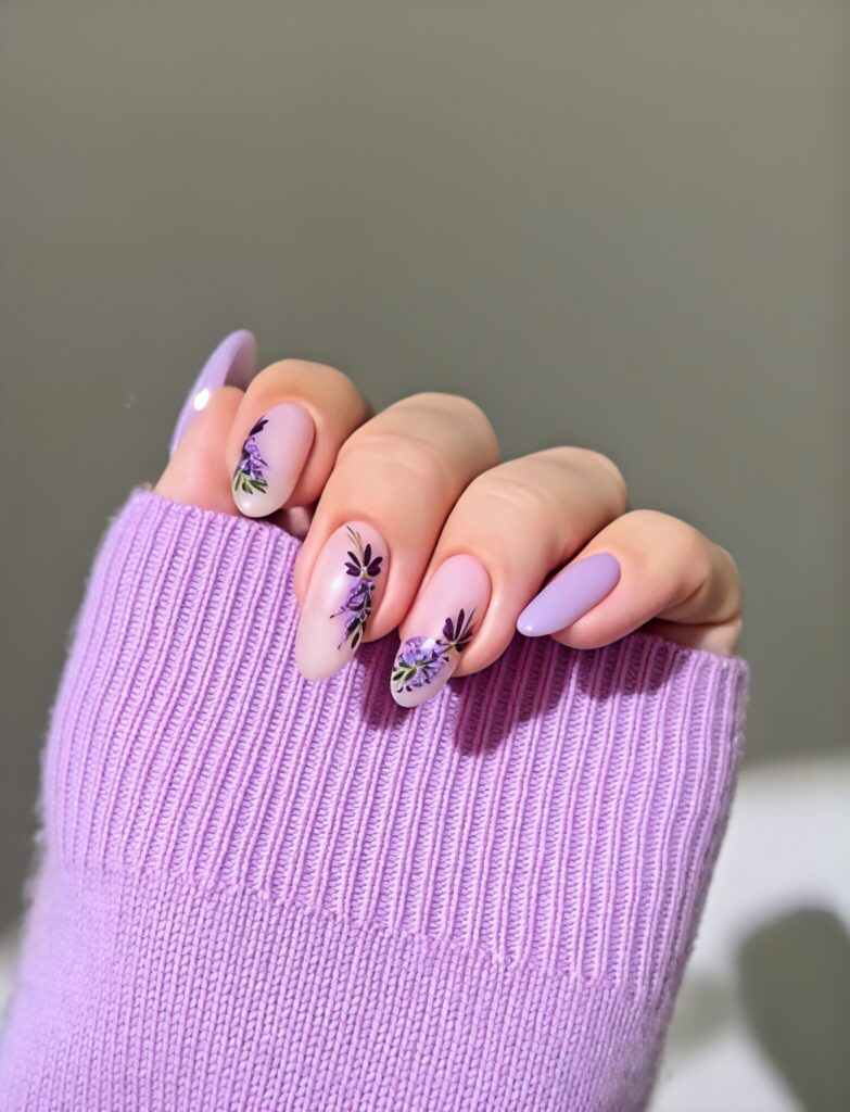 17. Lavender Almond Nails With Dreamy Touch