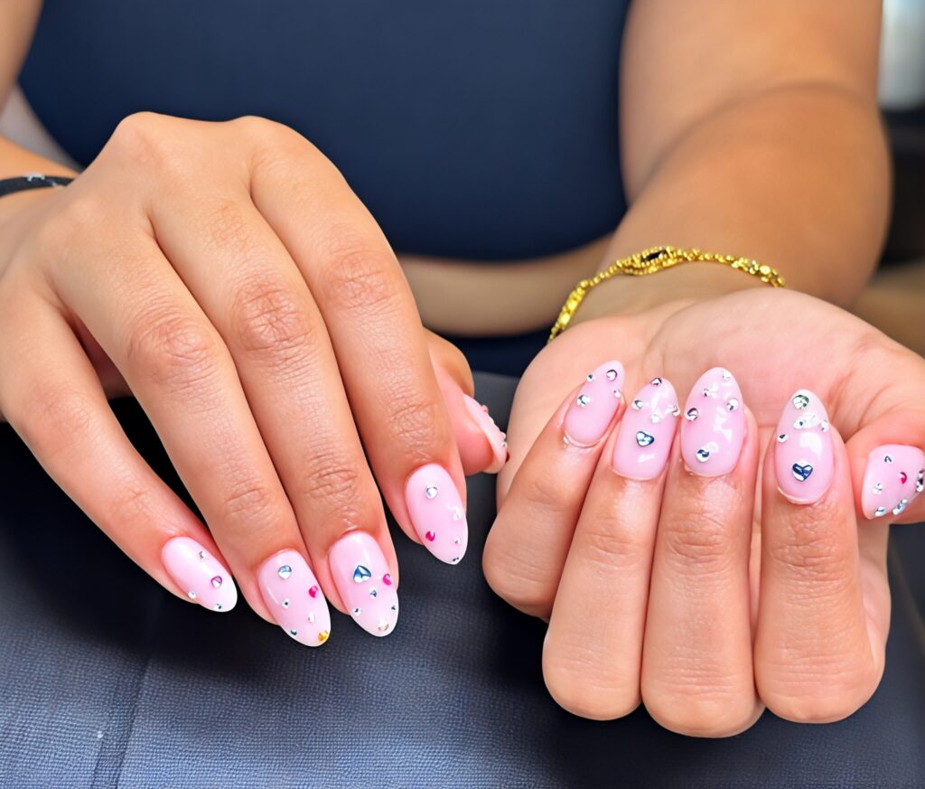 Rhinestone almond nails add sparkle and glamour. Small stones shine beautifully without making the nails heavy. The almond shape keeps the look elegant. This style is perfect for celebrations and special moments. These nails feel joyful and glamorous. They make you feel special and confident.
