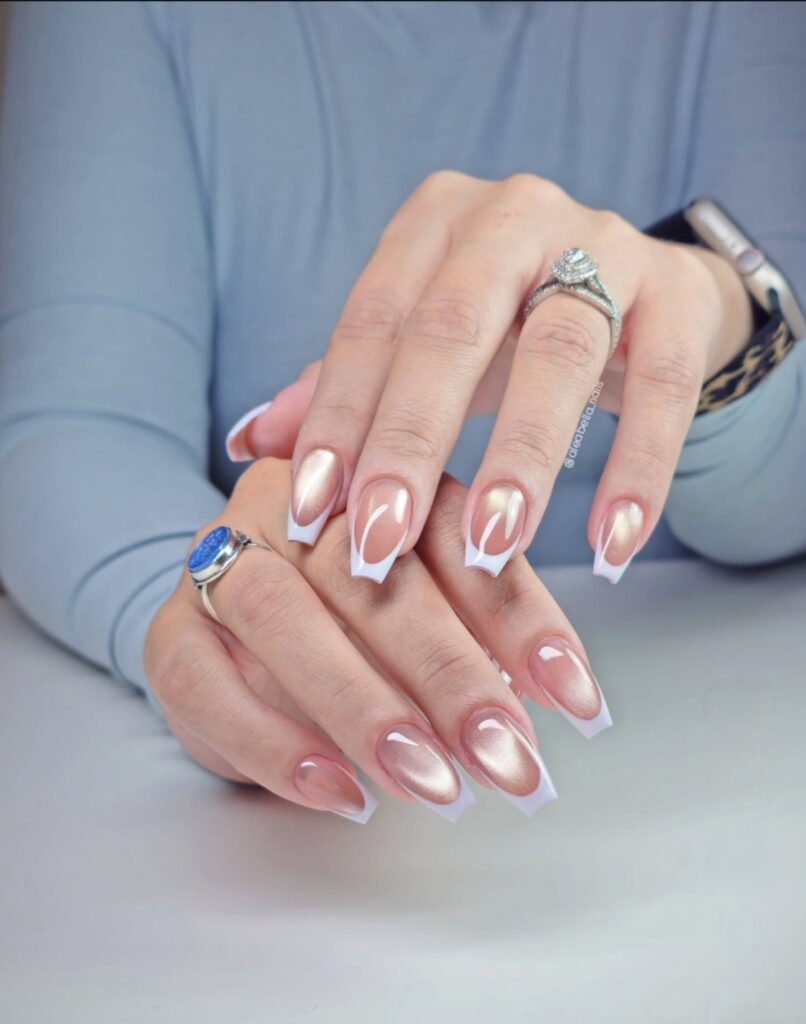 These nails feel rich and special. They give a gentle glow that makes you feel proud and beautiful.
