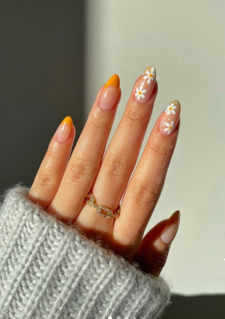 8. Floral Almond Nails With Romantic Feeling