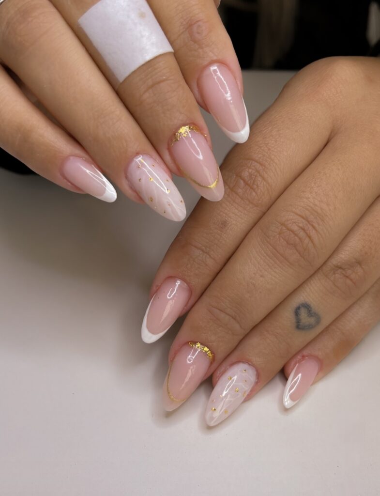 Gold accent almond nails add a touch of luxury without being too flashy. A small gold line or dot can change the whole look. The almond shape makes the gold detail look elegant and balanced. This style is perfect for special days or when you want to feel extra confident and classy.