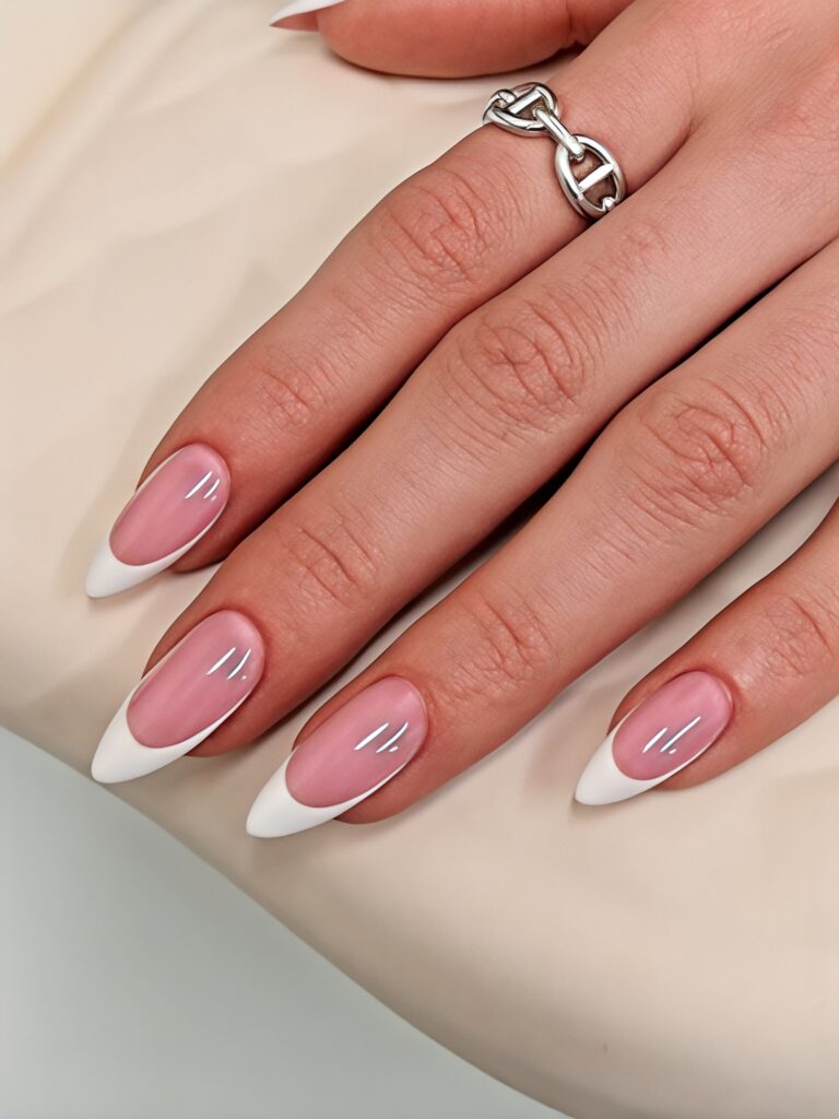 Classic white French nails are always in trend and never go out of fashion. They have a soft pink or nude base with clean white tips giving a neat and elegant look. This design is perfect for summer because it feels fresh and light. You can wear it to school, college, office or even parties. It matches every outfit easily. If you like simple and classy nails this style is the best choice for you.