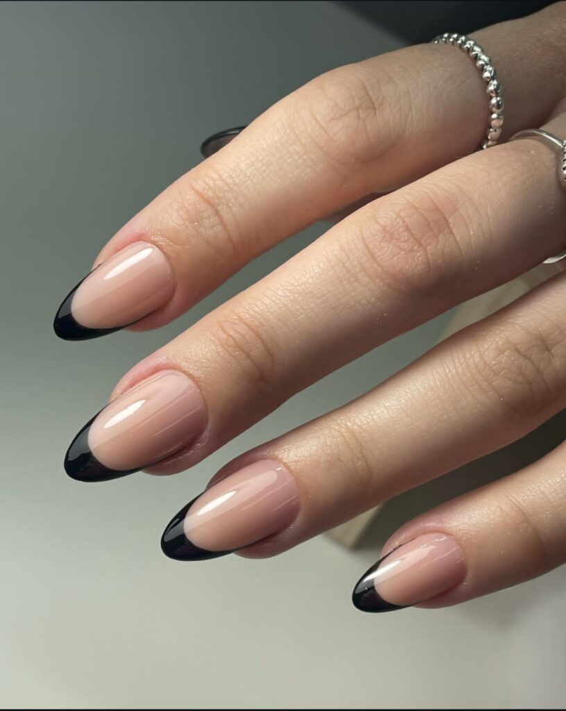 Black French nails are a modern twist on the classic style. Instead of white tips black polish is used to create a bold look. It looks sharp, stylish and very trendy. This design is perfect for night events or parties. It gives a strong and confident vibe. If you like dark and edgy styles black French nails are a great choice for a unique summer look.