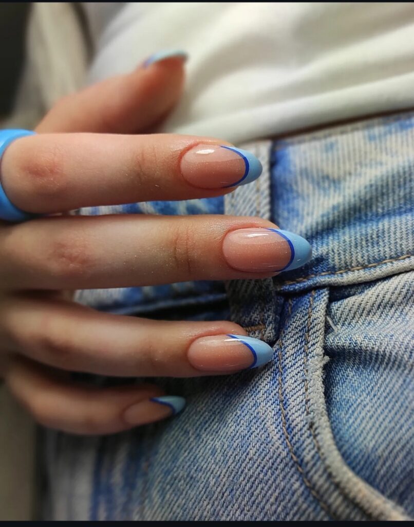 Blue French nails give a cool and relaxing vibe just like the ocean. You can use light blue, sky blue with even dark blue for tips line . This design is perfect for beach days and summer vacations. It looks refreshing and stylish. If you love calm and cool colors blue French nails are a great choice to match the summer mood.