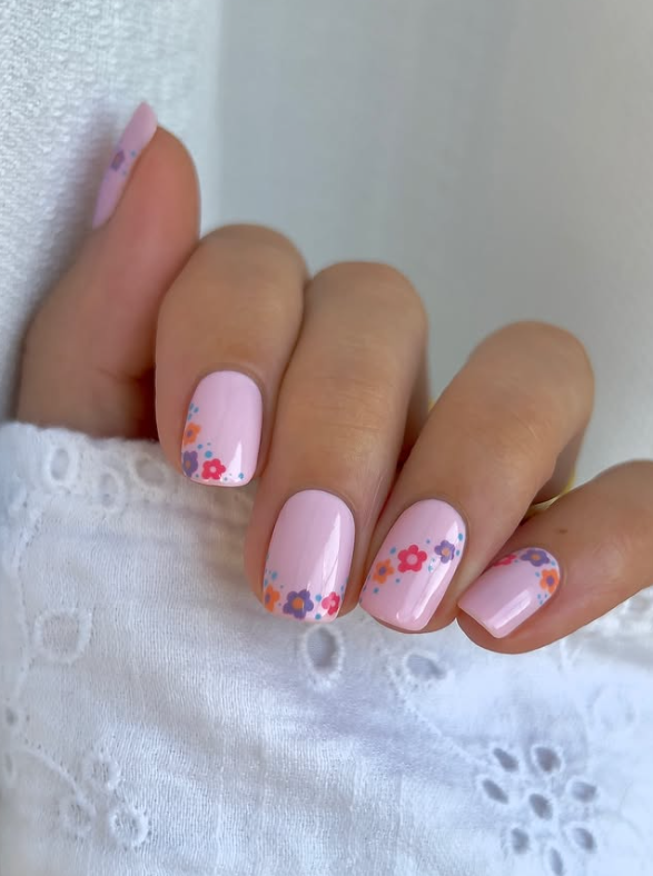Floral French nails are perfect for summer because they bring a fresh and natural feel. You can add small flower designs on your tips using bright colors like yellow, pink or orange. It feels like carrying a mini garden on your nails. This design looks very pretty and cheerful. It is great for vacations, picnics and outdoor events. If you love nature inspired designs this is a must-try.